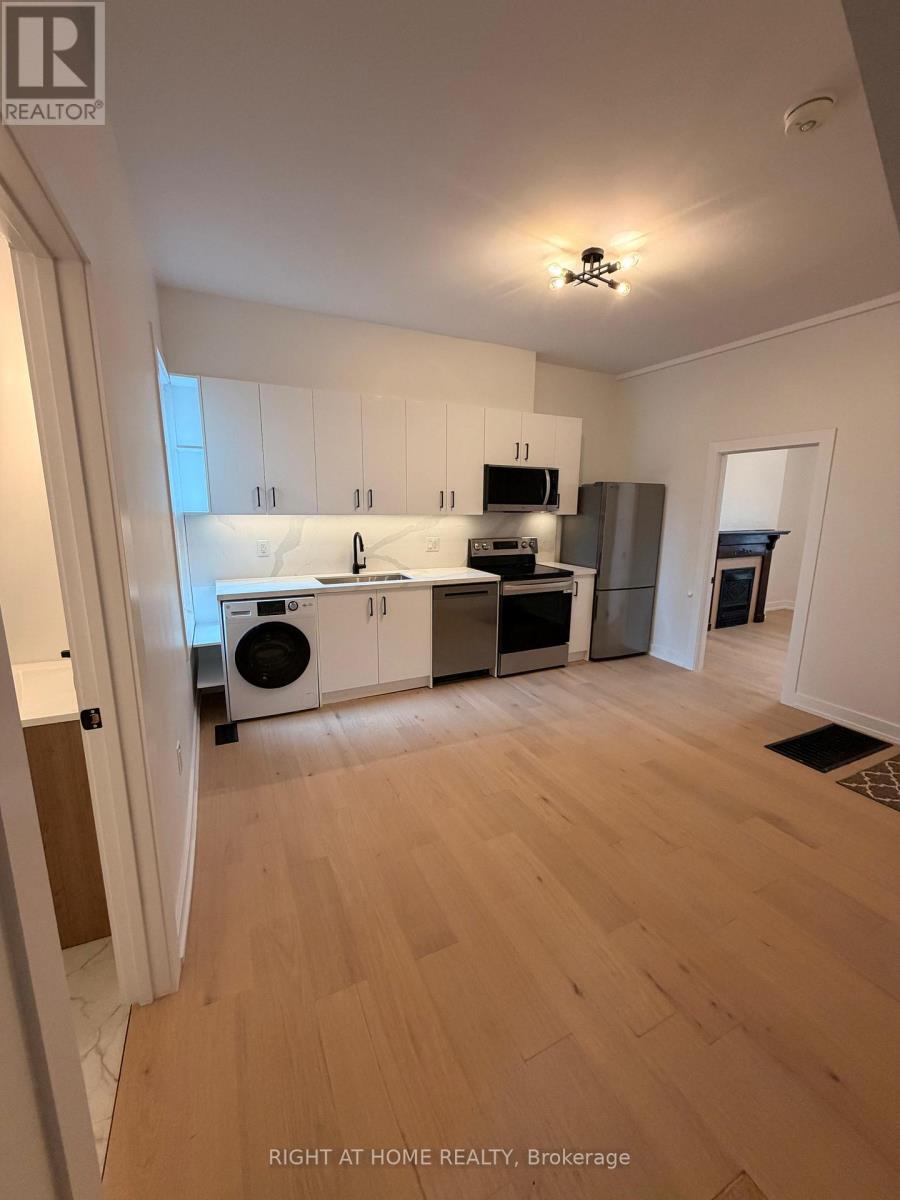 Renovated 2 bedroom apartment, modern kitchen with stainless steel appliances, quartz countertops and backsplash, hardwood floor, and AC. Shared backyard and in unit laundry, Walking distance to supermarkets and restaurants, 20 min walk to George brown College.