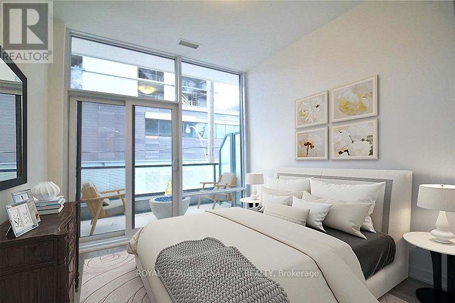 Discover Contemporary Living at Its Finest in Playground Condos! This exceptional unit showcases a spacious, one-of-a-kind layout with soaring ceilings that enhance its open and airy feel. The modern kitchen is a chefs dream, complete with premium built-in appliances, elegant countertop lighting, and a striking backsplash. A generous den offers an ideal workspace for your home office or creative pursuits. Indulge in world-class amenities, including a state-of-the-art fitness center with a sauna, yoga studio, and two luxurious Jacuzzis. Relax and entertain at the outdoor pool and patio area, or host gatherings in the stylish party room, theatre, and lounge. Perfectly positioned just steps from the waterfront, scenic parks, grocery stores, trendy shops, TTC access, The Ex, BMO Field, and the vibrant neighborhoods of King West and Liberty Village.