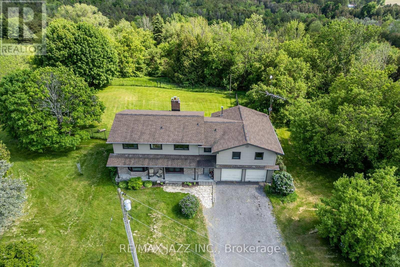 Discover the perfect balance of country lifestyle and modern convenience at this 60-acre property in Clarington. Just minutes to the free 407 extension, close to Brimacombe Ski Hill (with night skiing!!!), and near the Ganaraska Forest's extensive trail network for hiking, horseback riding, snowmobiling and recreational vehicles, this location is ideal for active families and outdoor enthusiasts. With approx.. 42 workable acres, the land also offers excellent potential for horses, hobby farming or gardening. The spacious 4 bedroom , 4 bathroom home features a versatile layout with multiple living spaces and an upstairs office/bedroom with its own private staircase, plus a great room and wet bar . While the design could suit multi-generational living, it has always been enjoyed as a single-family residence. The lower level sub-garage provides secure storage for tools, tractors and machinery and the property accommodates parking for up to 22 vehicles. Updates include geothermal heating & cooling(2009), roof(2014), siding/windows/fascia(2015) and interior painting(2021). Utilities average just $400/month and high-speed internet makes working from home simple and reliable. With its mix of acreage, upgrades and unbeatable location, this property is a rare opportunity to enjoy the privacy of rural living while staying connected to everything the Durham Region has to offer.