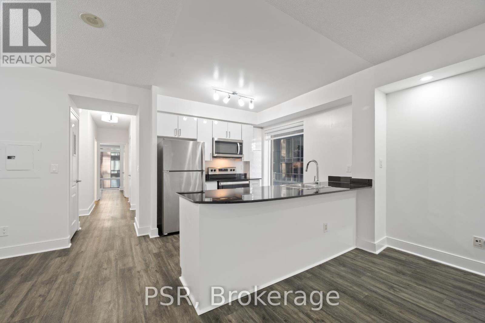 This spacious Two-Bedroom corner suite offers 970 square feet of thoughtfully designed living space. The open-concept kitchen features a breakfast bar that seamlessly connects to the living and dining areas. Additional highlights include an ensuite bathroom, two closets in the primary bedroom, and vinyl flooring throughout. Residents can enjoy a variety of amenities, including a concierge, gym, and a rooftop terrace with BBQs, along with a party room and lounge, movie theatre, and golf simulator for added entertainment. Situated in the heart of the city, this property offers unmatched proximity to the subway, Financial District, Entertainment District, and the lively neighbourhoods of King and Queen West, with easy access to the Gardiner Expressway. Experience Toronto's finest restaurants, theatre, shopping, and vibrant city life right at your doorstep!